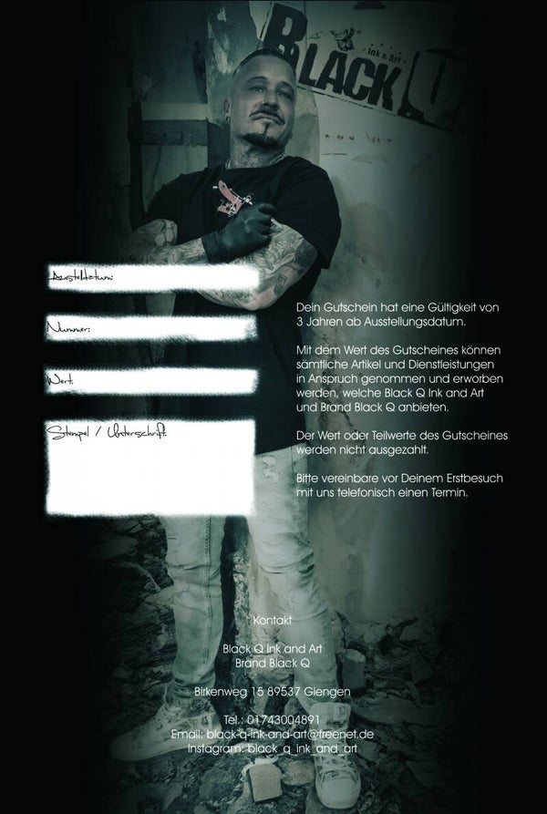 Mit unseren Tattoo Gutscheinen triffst du garantiert ins Schwarze. Wähle aus verschiedenen Werten von 50 € bis 300 €, passend für jeden Anlass.